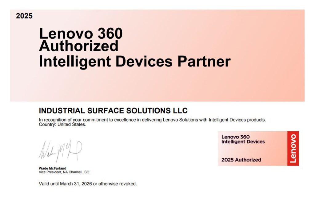 As a Lenovo 360 Authorized Partner, INDUSTRIAL SURFACE SOLUTIONS LLC provides vendor-authorized infrastructure quotes across centralized, distributed, and edge environments.