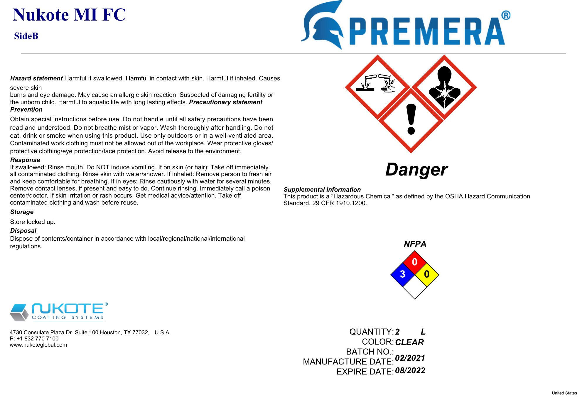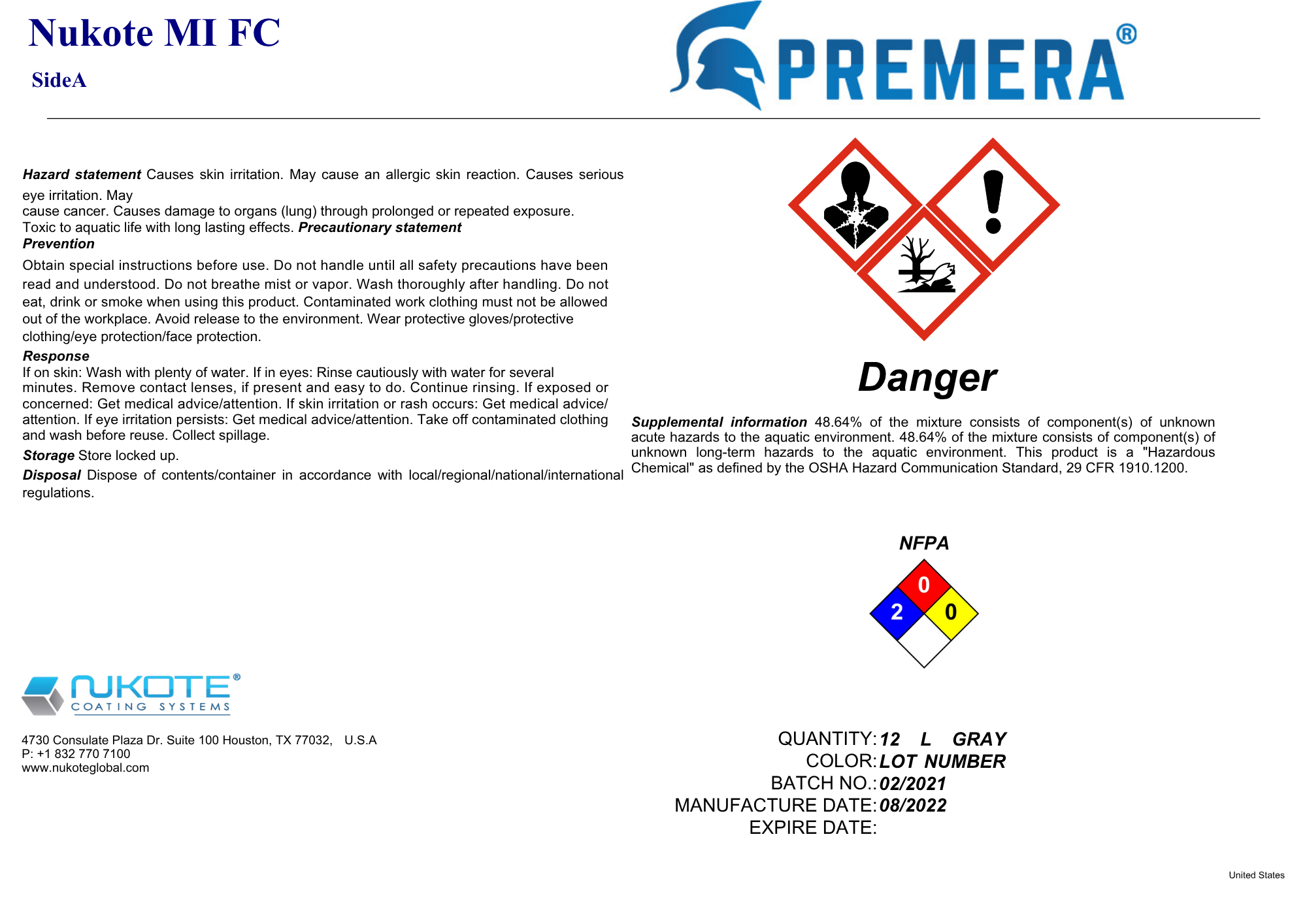 Nukote MI Ceramic FC is a plural component system composed of a proprietary polymeric binder, providing excellent performance in highly corrosive, chemical and abrasive environments, at ambient or elevated temperatures. This product is designed for industrial use at elevated temperatures and will maintain its physical properties under continued exposure at high constant temperature both in exposed as well as immersion conditions. Nukote MI Ceramic FC is resistant to many solvents, hydrocarbons, steam, chemicals including high levels of hydrochloric acid, sulphuric acid, Alkalis, Mineral Spirits, Cutting oil, Sulphur fumes, Seawater, in ambient or elevated temperatures. Nukote MI Ceramic FC can be applied to suitably prepared interior or exterior concrete ,metal and other surfaces to protect personnel and assets by making the building less vulnerable to threats of explosion and ballistics. It can also be used in a blast-resistant coating system for existing structures and effectively contain debris in the case of an explosion and greatly reduce injuries and death from flying debris suitable in applications for both ballistic and explosive threats. Nukote MI Ceramic FC has good bond to rubber, metal as well as concrete surfaces and also is suitable in cryogenic applications. MI Ceramic FC is excellent for lining vessels in direct constant contact with hydrochloric acid at elevated temperature and acid fumes.