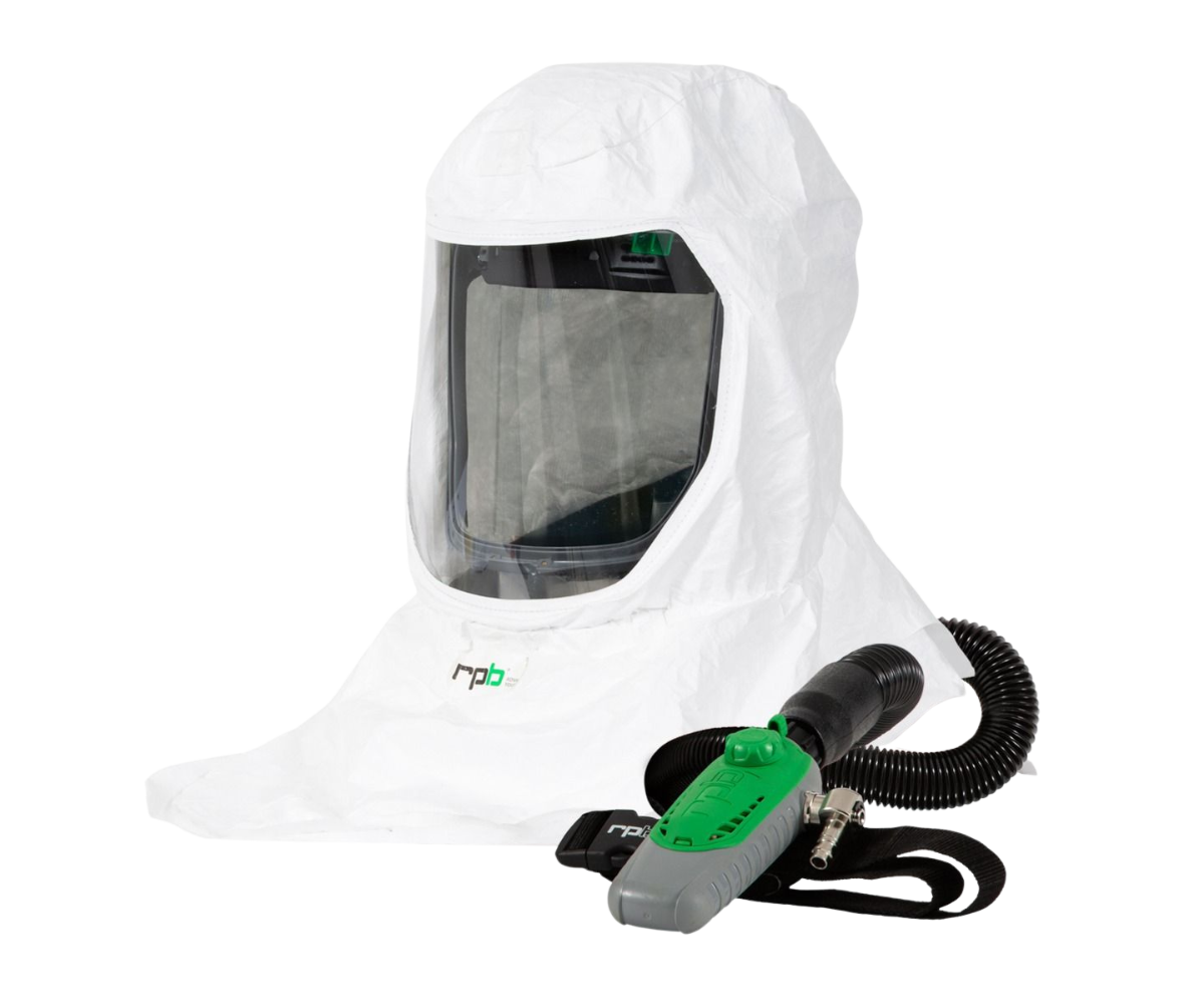 17-115-12-SR RPB T-Link Respirator, includes: 17-110 T-Link Bump Cap Assembly, 17-712 Tychem 2000 Hood, 04-833 SAR Breathing Tube, 03-504 C40 Climate Control Device with Schrader Fitting – NIOSH