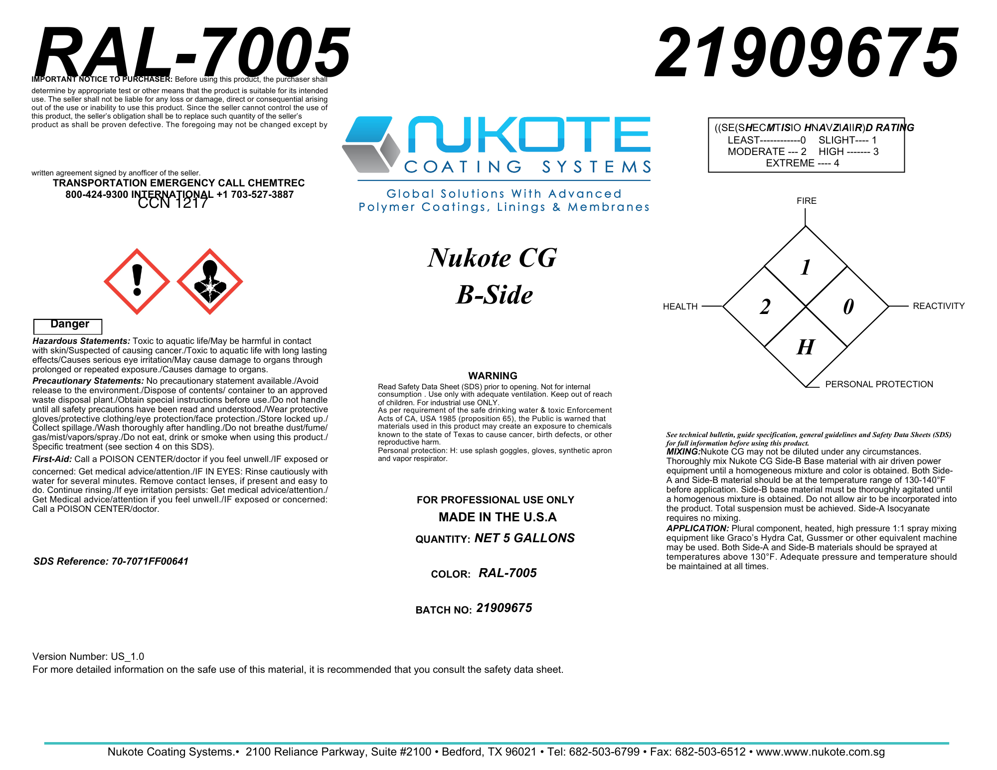 NUKOTE | CG | 120G | PURCHASE INCLUDES MINIMUM QUANTITY ORDER [4 SETS] [120 GALLONS] [1 PALLET]