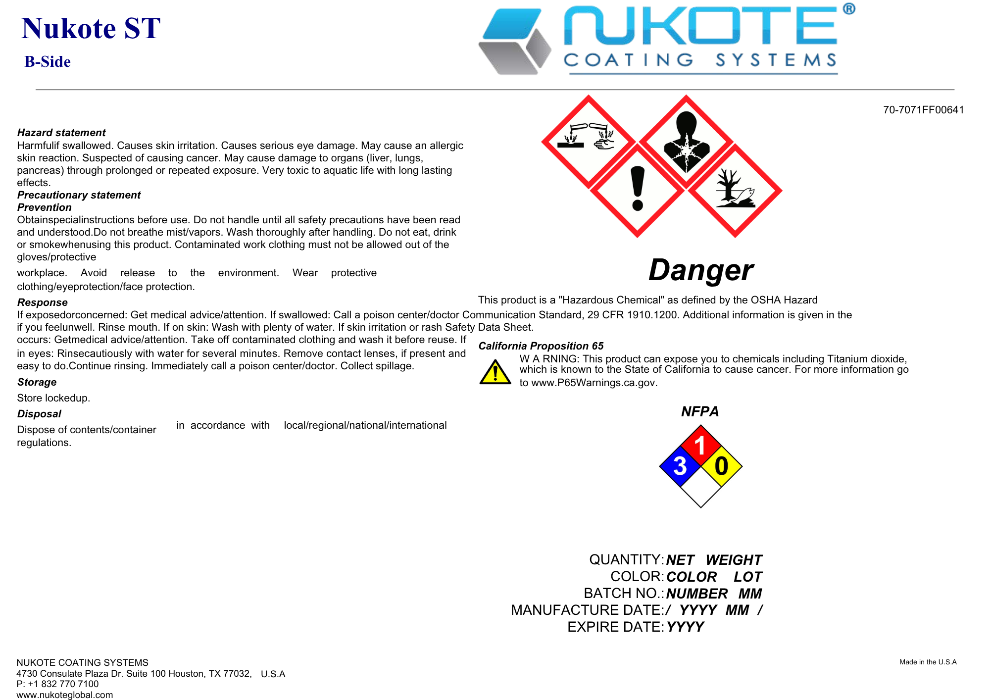 NUKOTE | ST | 200G | PURCHASE INCLUDES MINIMUM QUANTITY ORDER [2 SETS] [200 GALLONS] [1 PALLET]